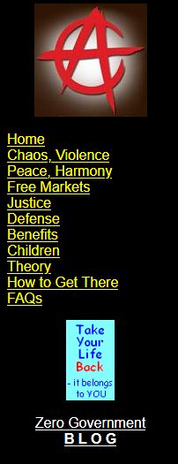 First, the navigation bar on the left of all its pages now has a bigger, clearer type font showing links to the eleven pages on the minisite - and at its top, the white "A" symbol I've replaced with the colored "CA" one shown here. The "A" is central of course, because it conveys the fact that rule is repudiated as un-natural; humans each own ourselves and nobody else does, that's the Self Ownership Axiom or SOA. So what's the "C" for? It reflects my opinion that once society is free of rulers, it will function in a Capitalist manner, because that alone is a voluntary economic system, consistent with self-rule. Strangely, some people call themselves "anarchists" yet destroy the property of others, or even propose the "syndicalist" idea - that workers take over the factories. Nothing against employees bidding for shares in the firm they work for, that's quite often done and can be beneficial - but the "anarcho-syndicalists" don't mean bidding and transfering ownership by agreement; they mean grabbing, or stealing. Nothing voluntary about that, and so those folk are not really anarchists at all. Perhaps some way of dealing with each other voluntarily will evolve which is not capitalist - fine. If it's better, and involves no compulsion, let it flourish. But in the meantime, anarcho-capitalism will work very well. The other main improvement to the Anarchist Alternative site is on the page called "How to Get There from Here". It always stressed the need to spread the word, but with the new e-booklet as well as TOLFA, there is now really a great deal of help at hand, and in the revised version of that page that fact is stressed. Take a look, see how it appears to you. I'm finding that that site, along with the QuitGov one, is increasingly useful when posting on social media. It's always good to make short posts (more people read them) but we have so much to say, it's not easy - so I quite often refer out to one or both of those sites. For example when the Republicans caved in to pressure on April 19th and "gave" $61 billion of your money to Ukraine, I posted the opinion that those traitors are no better than the Demofascists and hence that there is no political fix available, hence readers should "consider the anarchist alternative" - and made a link to that site. Some media hosts don't allow outbound links, so one has to be circumspect. One way I use is to refer in the text to TheAnarchistAlternative as one word (so hinting: this might be part of a URL) and follow the sentence with "The suffix is info". Or I might say "search for" the site, because as noted here on 6/13/23 (in the footnote) it now shows up in the first page of search engines. Incidentally, I'm very glad to note that the same is true of my home page, TakeLifeBack.com. So, I hope you like the tidying-up; it was well short of a makeover, but perhaps qualified as a dusting and polishing. |